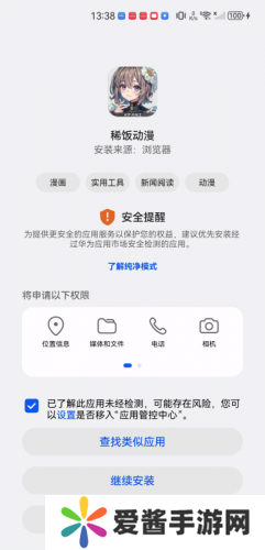 3、第三步,点击勾选“已了解此应用未经检测……”,然后再点击“继续安装”。(出现安全提醒,不用惊慌)