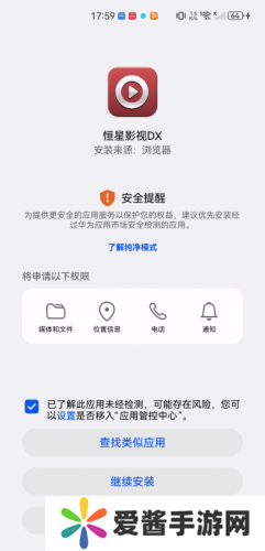 3、点击勾选“已了解此应用未经检测……”,点击“继续安装”。