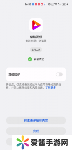 5、最终,出现绿色对号,说明“安装完成”,点击打开,即可体验。