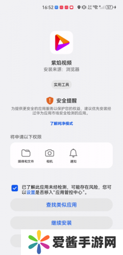 3、第三步,点击勾选“已了解此应用未经检测……”,然后再点击“继续安装”。(出现安全提醒,不用惊慌)