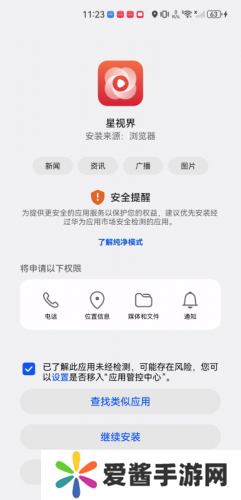 3、第三步,点击勾选“已了解此应用未经检测……”,然后再点击“继续安装”。(出现安全提醒,不用惊慌)