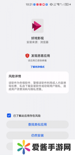 2、系统发现恶意应用,可能是误判,需要点击“了解风险”。