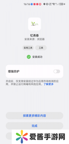 5、最终,出现绿色对号,说明“安装完成”,点击打开,即可体验。
