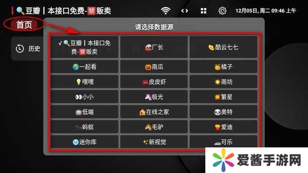 回到主页,点击“首页”就可以看到很多数据源,随便选择一个,就可以开始看视频了;