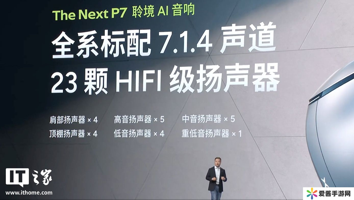 新车还配备 23 颗定制 HIFI 级扬声器(含 4 个肩部扬声器、5 个高音扬声器、5 个中音扬声器、4 个顶棚扬声器、4 个低音扬声器、1 个重低音扬声器),支持 7.1.4 声道 AI 全景声;高配车型拥有四门静音电吸门、双层夹胶玻璃、9 英寸流媒体后视镜。