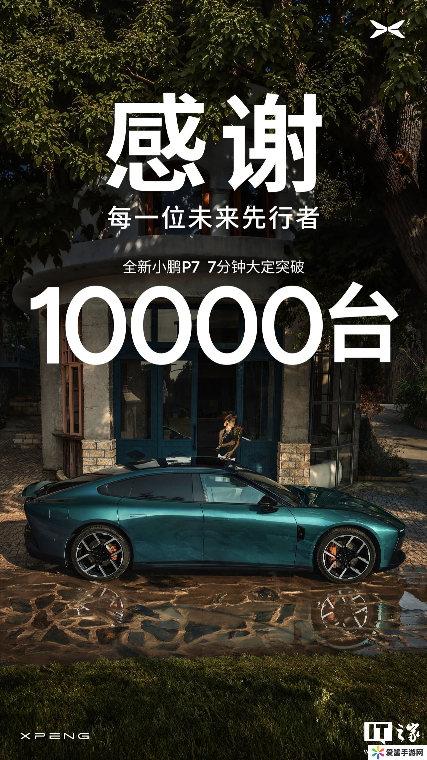 小鹏汽车官方宣布:“全新小鹏 P7,7 分钟,大定突破 10000 台!”