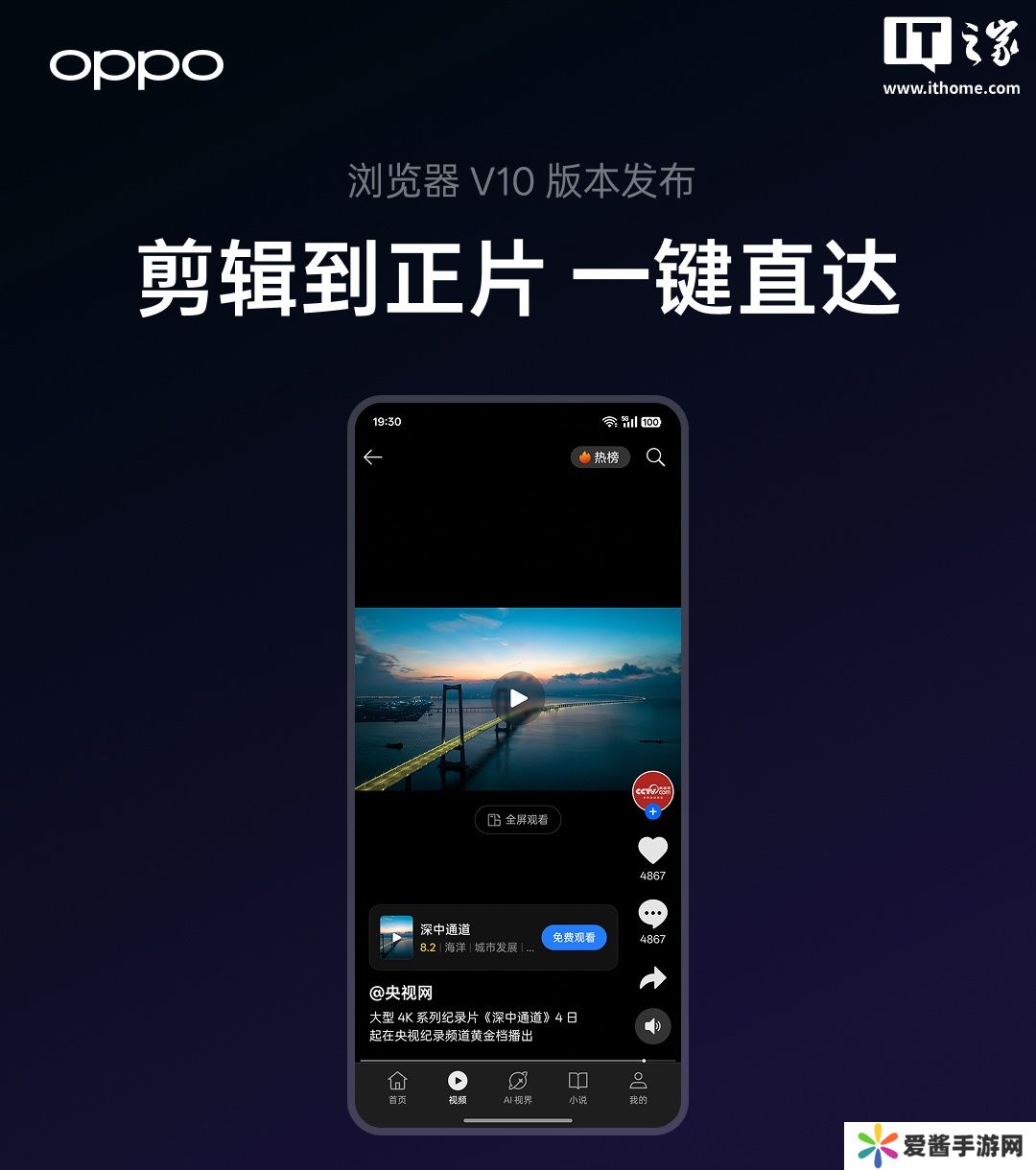 本站 8 月 27 日消息,OPPO 官方今日宣布,OPPO 浏览器 V10 版本上线。新版本 OPPO 浏览器支持 AI 智慧助手功能,可精细解答疑难,同时提供视频极速播、去除广告浏览等功能。
