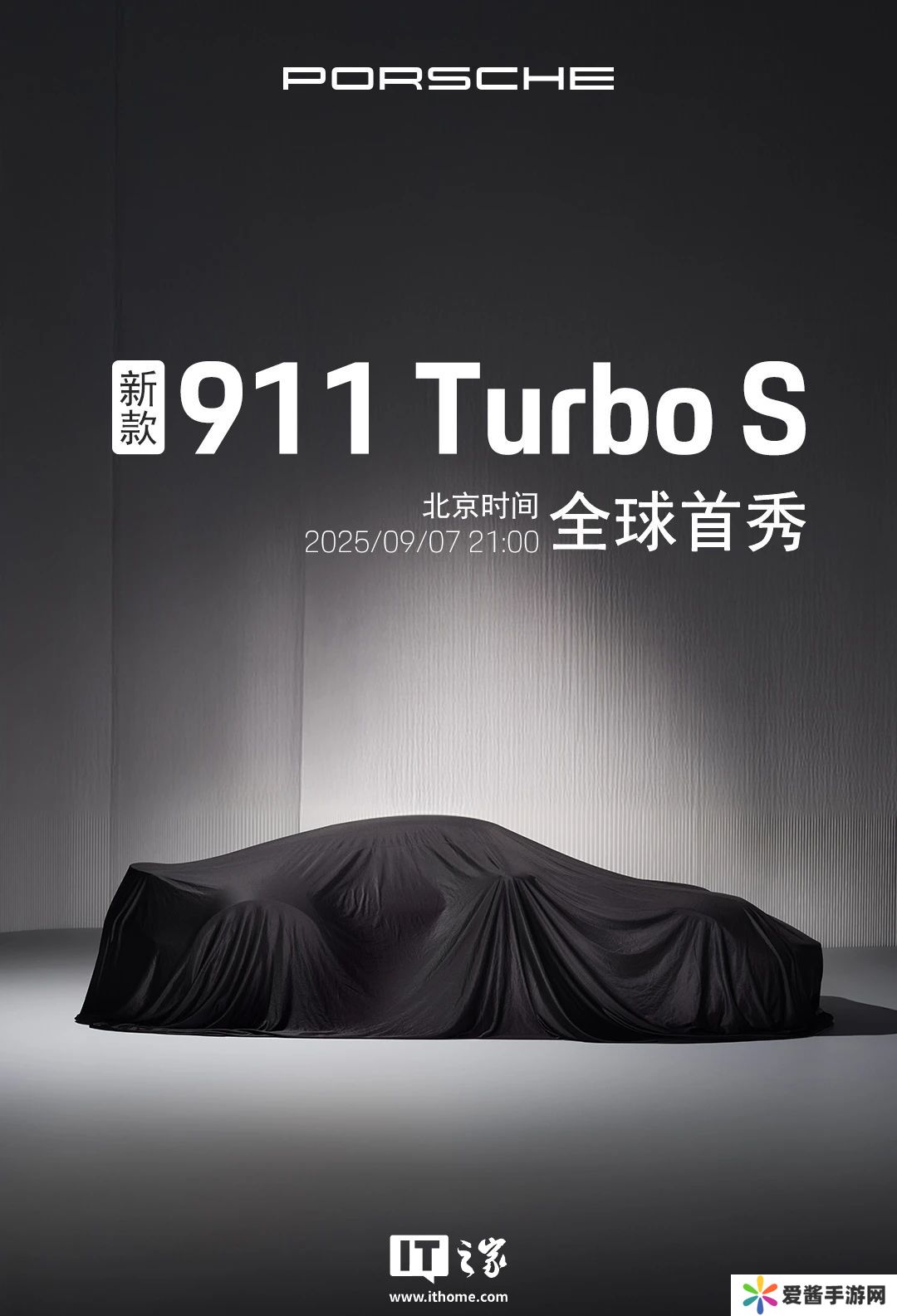 本站 8 月 28 日消息,保时捷中国新闻中心今日宣布,新款 911 Turbo S 再升级,全球首秀北京时间定档 9 月 7 日 21:00。