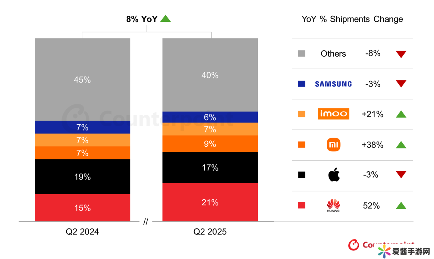 凭借其多样化的产品组合、强劲的国内势头以及中高端产品具有竞争力的价格,华为首次超越苹果,成为全球出货量的头把交椅。