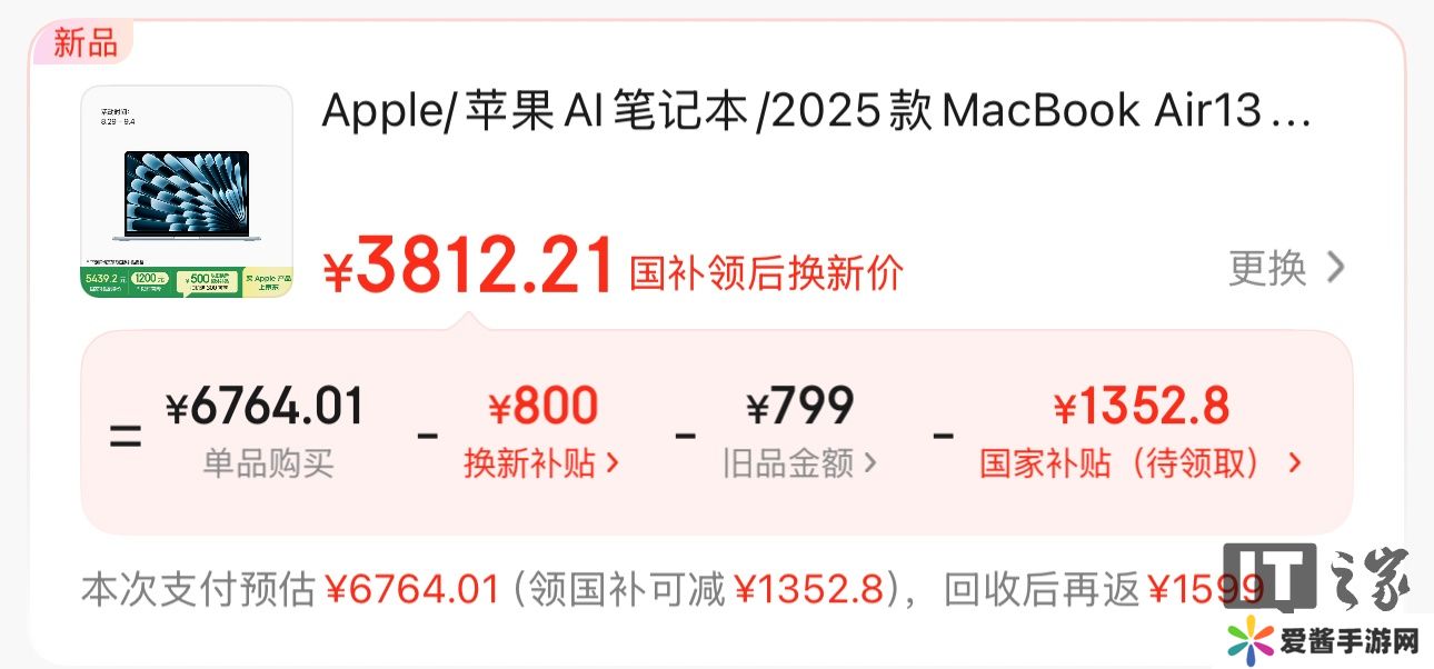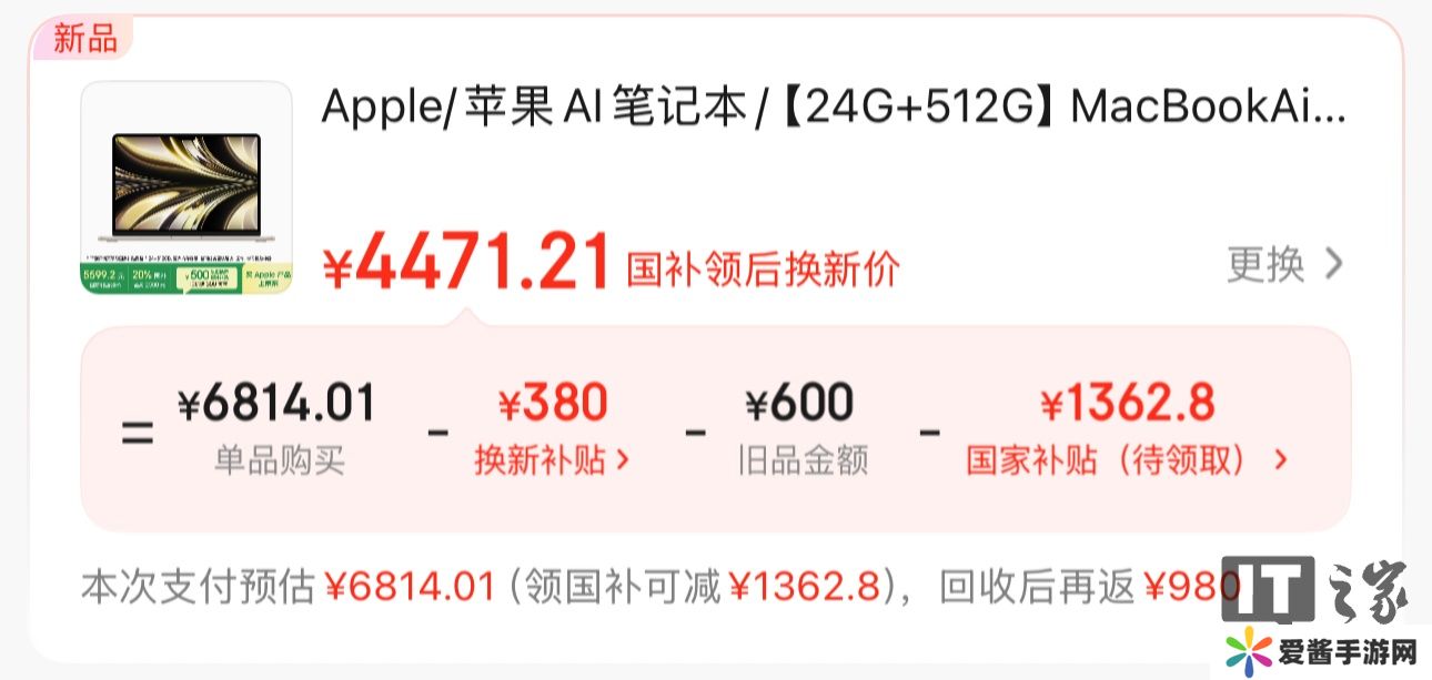 京东 MacBookAir 24+512GM2 (8+10 核) 13.6 英寸国补后 5451 元直达链接旧物以有划痕无维修的 iPhone 11 128G 为例: