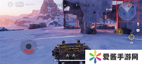战场地图中会标注有基地的位置,分别用蓝色和红色的圆点标注队友和敌方战车的位置,黄色圆点则是自身的位置。