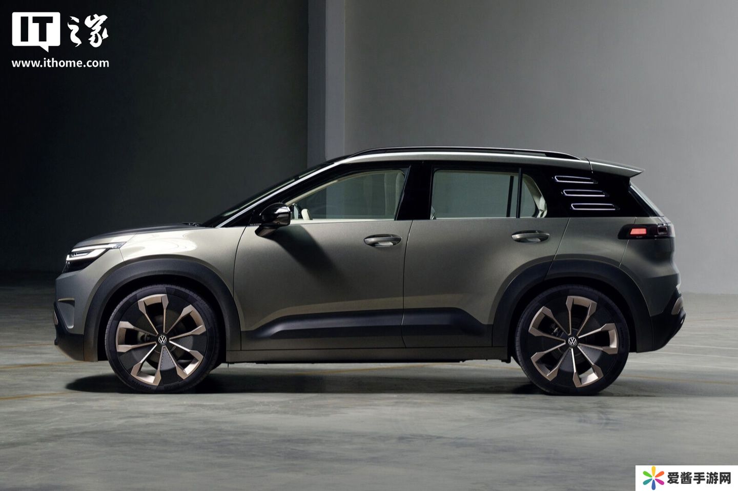 大众表示,新车设计中暗藏对品牌经典车型的致敬。例如,略微前倾的 C 柱设计灵感源自高尔夫(Golf);前脸三根横向饰条则复刻了经典车型“巴士”(Bus)的设计语言,这一元素此前也被应用到 ID. Buzz 车型上。2025 年,“悬浮式车顶”设计依旧流行,ID. Cross 便通过黑色涂装的立柱与“城市丛林绿”车身形成鲜明对比,将这一风格展现得淋漓尽致。
