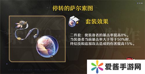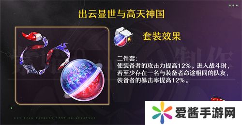 解析:这个套装常态提高暴击率,以及需要队伍击杀叠层的暴击伤害,在虚构叙事等对群环境中很容易叠满,其他环境中就比较艰难,这也是一个虚构特化的选项。