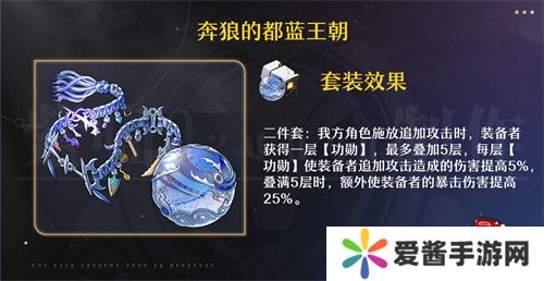 解析:这个套装需要队伍中有较高的追击频率来叠层启动,可获得大量的追击增伤和暴击伤害加成。一般在虚构叙事队伍中,搭配其他追击队友一起使用,如果只有翡翠自己一个追击的话效果不是特别好,除非是长轴作战,前期小怪叠层,叠满正好打boss。