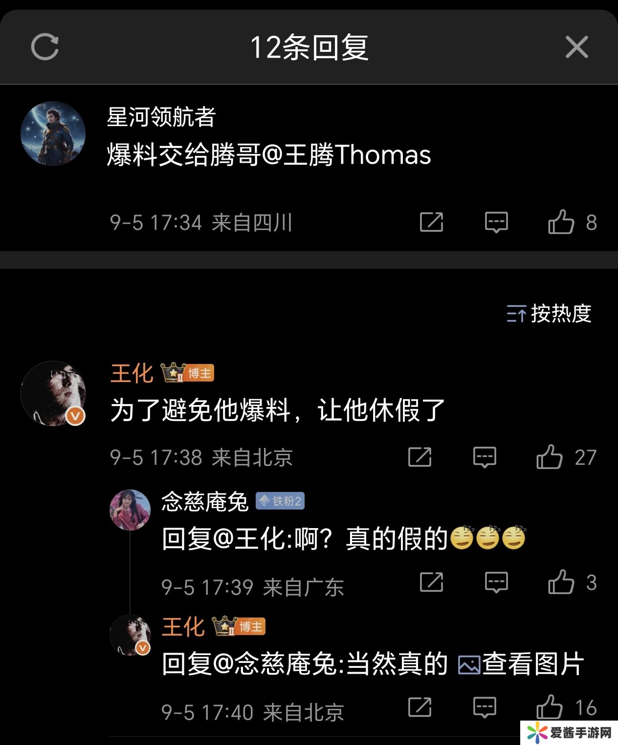 此外,小米公关王化微博 9 月 5 日曾回复网友评论称,“为了避免让王腾爆料,让他休假了。”