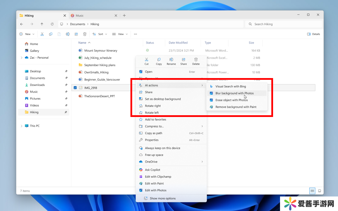 本站 9 月 9 日消息,微软公司昨日(9 月 8 日)发布博文,邀请 Canary 频道的 Windows Insider 项目成员,测试 Windows 11 Build 27938 预览版更新,主要为文件管理器引入 AI 操作功能,支持右键快速编辑图片(模糊背景、移除物体等)和文档摘要,同时回归大时钟带秒数显示选项。