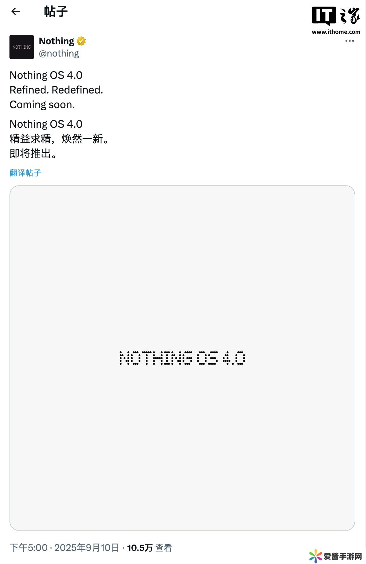 本站 9 月 10 日消息,Nothing 此前承诺,将在 9 月推出基于 Android 16 的 Nothing OS 4.0。时间来到今天,Nothing 在 X 平台发布了一段最新预告,展示了部分全新设计的图标。