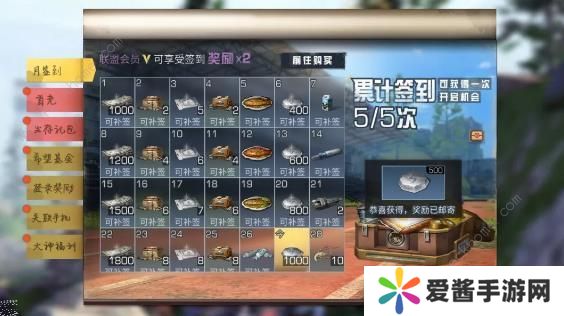 累计签到五次有几率获得500技能点