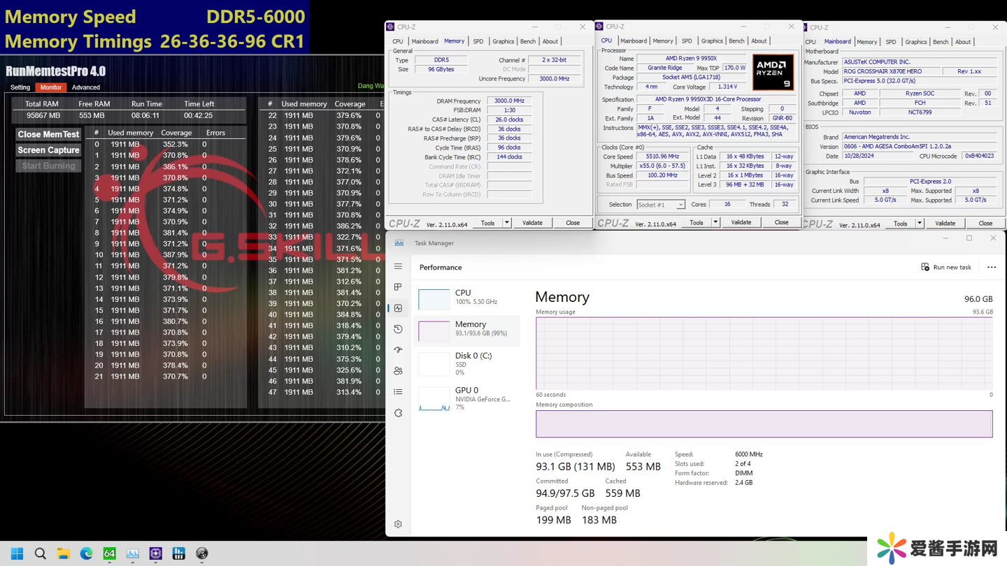芝奇 6000CL2648GB×2 内存套装已于 AMD X870 平台上完成验证,在锐龙 9 9950X3D 处理器 + 华硕 ROGCrosshair X870E Hero 主板和锐龙 9 9900X 处理器 + 微星 MPG X870E CARBON WIFI 两套平台上均烧机成功: