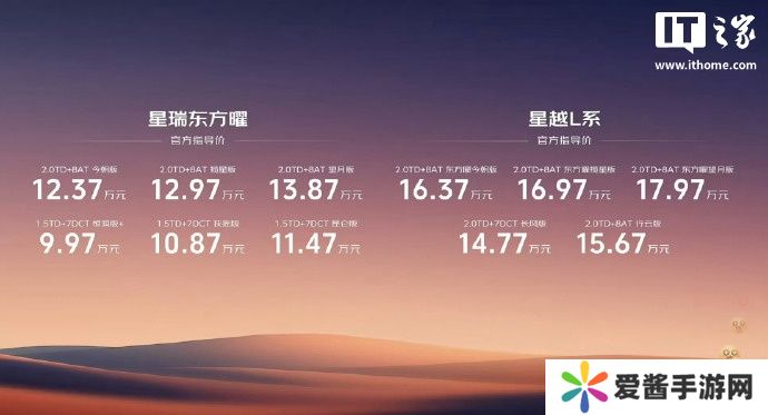 本站 3 月 20 日消息,吉利星越 L 新增行云版和东方曜・今朝版两款车型,官方指导价分别为 15.67 万元和 16.37 万元,两款车型均搭载了 2.0TD 高功率发动机。