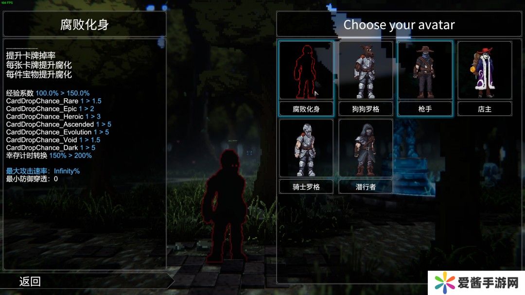 隐藏角色腐败化身可以去玩幸存者模式,玩到大概第8天时间会突然加速,其他怪全消失就剩一个血巨厚但没啥攻击力的boss,再等一会就通关了,然后就解锁了,现实时间大约2个半小时。