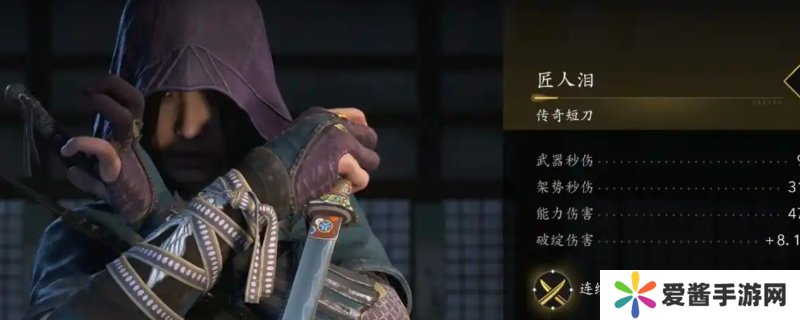 《刺客信条:影》中的奈绪江有14把传说武器,匠人泪短刀就是其中之一,而匠人泪短刀在播磨最南边加古川河口上方偏右一点的高木大冢岩。旁边有高木古坟,里面有弥助武器,记得搜一搜。