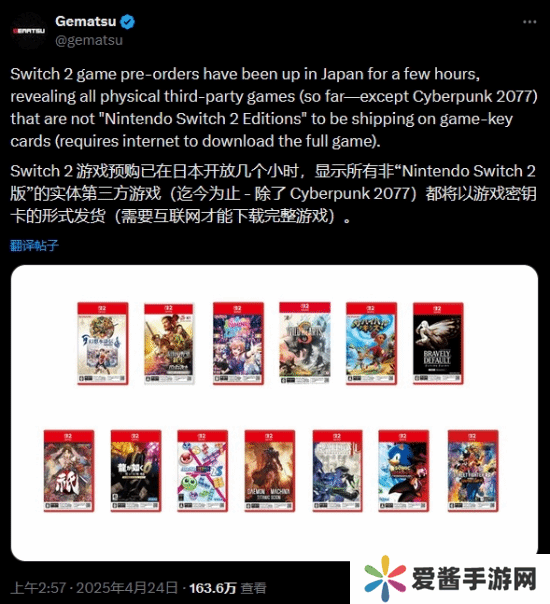 近日,据海外多家媒体报道,任天堂下一代游戏主机Switch 2在发售策略上将迎来重大变革。对于非任天堂自研的第三方游戏实体版,除了由CD Projekt推出的《赛博朋克2077》外,其余都将采用一种全新的“游戏密钥卡”形式进行销售。