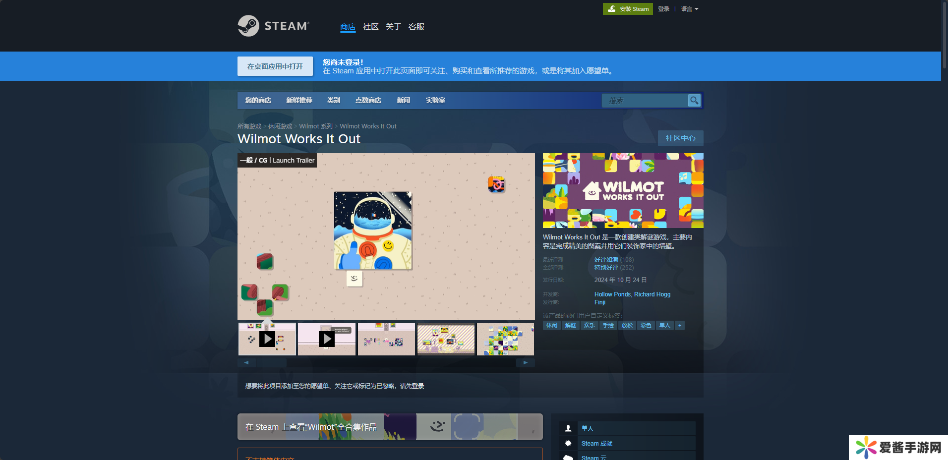 Steam平台需要先安装Steam平台,之后注册一个账号登录,然后搜索“Wilmot Works It Out”进入商店购买页面。