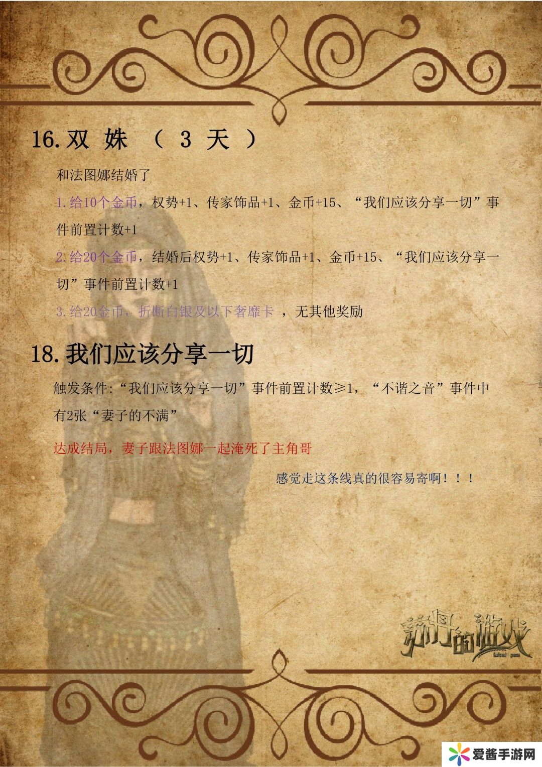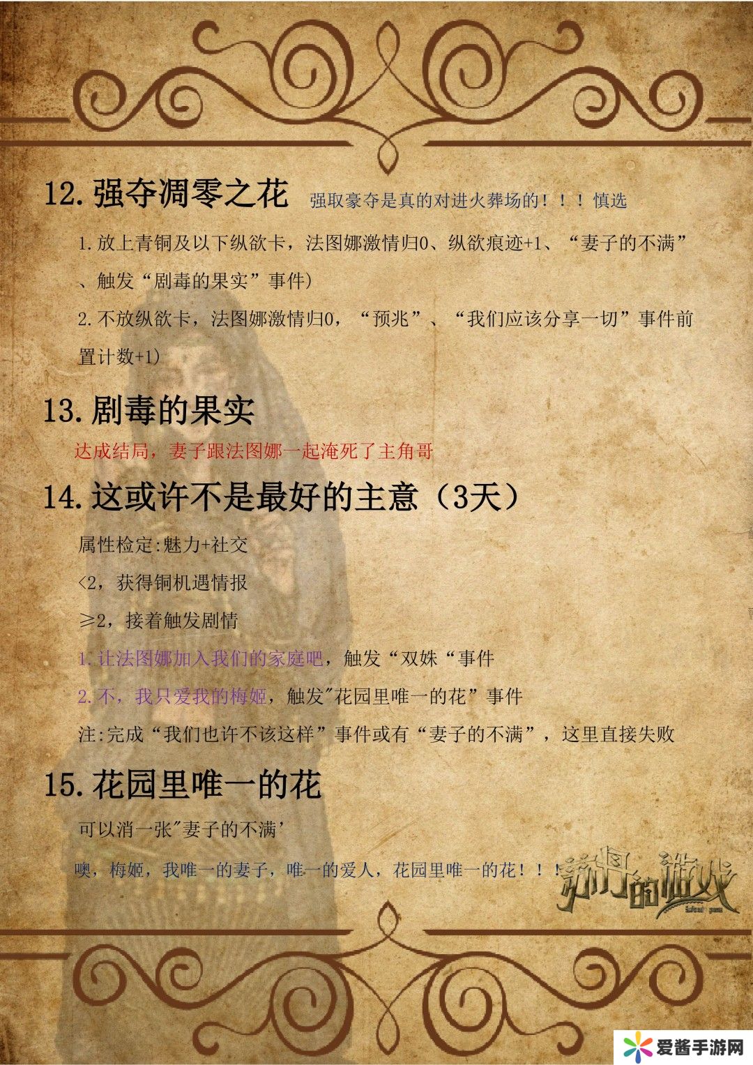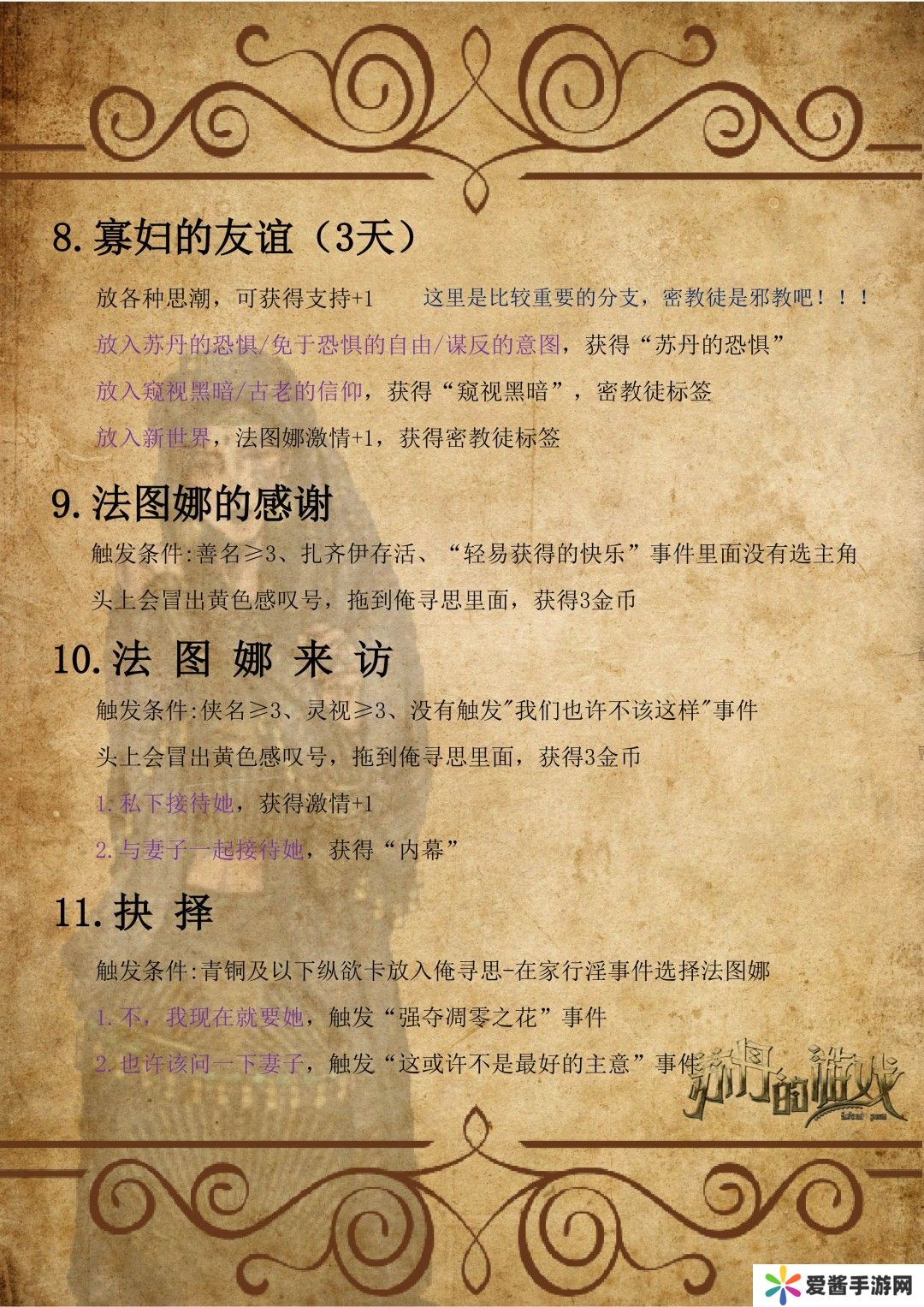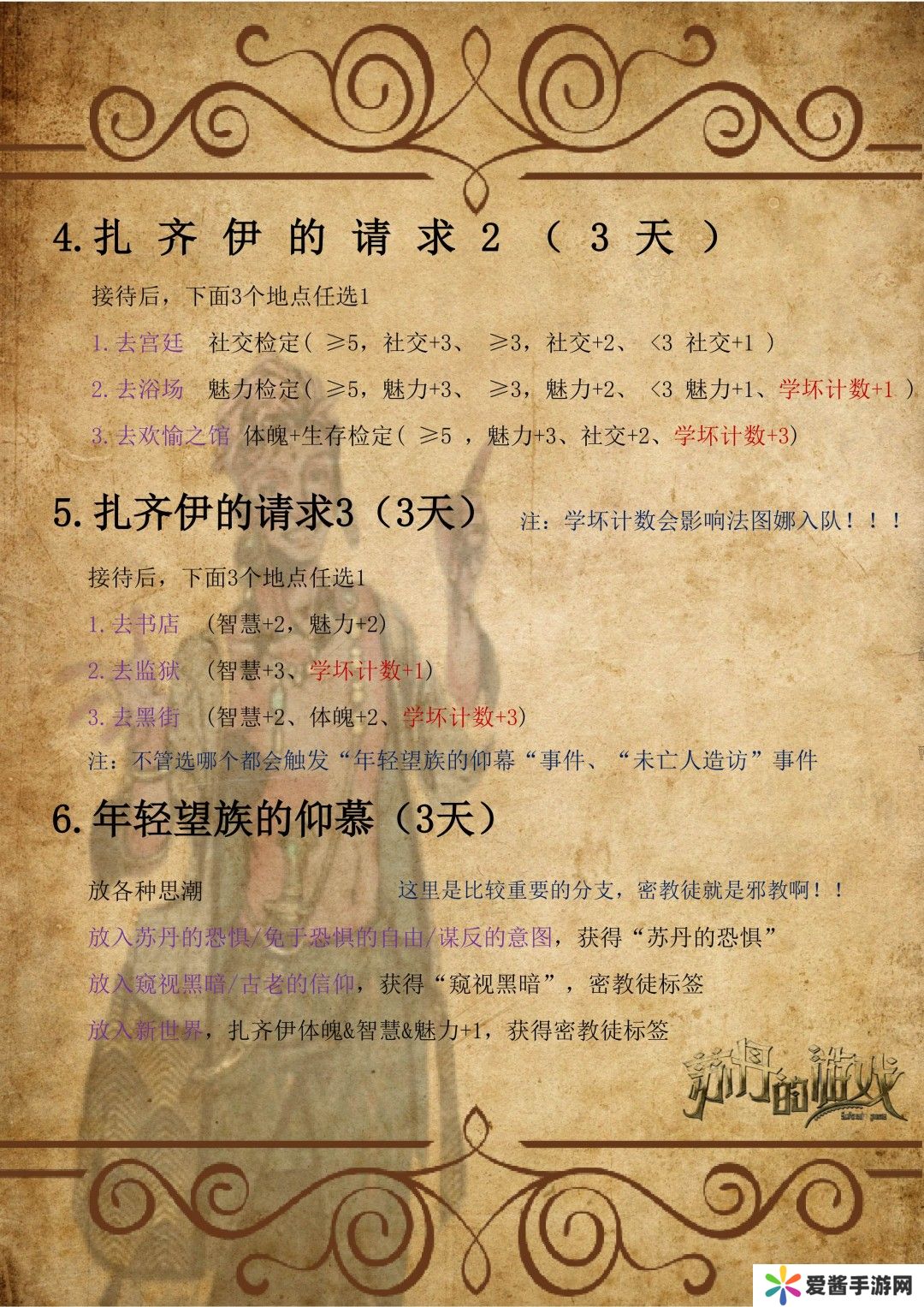 《苏丹的游戏》中攻略法图娜和扎齐伊支线的复杂度堪称游戏之最,因此很多玩家不知道怎么攻略他们,首先,城外骚乱(3天),检定属性:战斗+体魄,这里可以消一张青铜及以下征服卡!