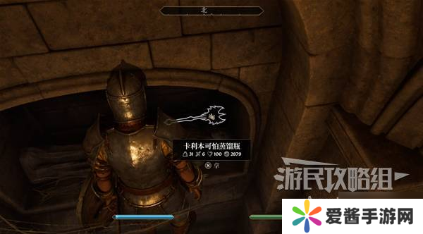 注意卡利本·特伦提乌斯的石棺上有把强力武器,需要跳到石棺上拿。