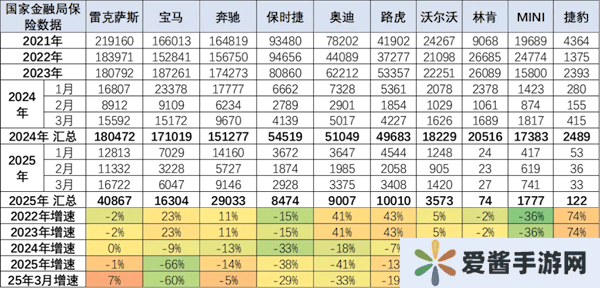 在具体品牌表现上,雷克萨斯在2025年的进口零售业务略有下滑,但仍保持了相对稳定的市场表现。宝马、奥迪和路虎等品牌也展现出了较强的市场韧性。然而,保时捷的近期表现则相对疲软,今年前三个月的进口量分别为3672辆、1874辆和2928辆,与去年同期相比几乎减半。