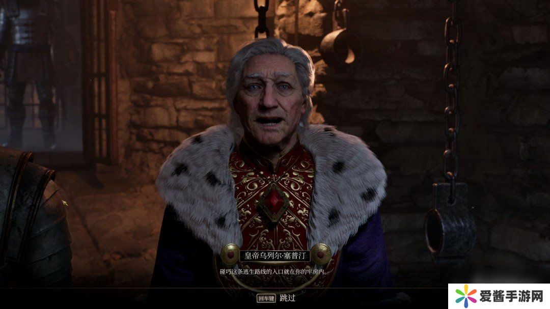 对话结束后皇帝就被突然出现的刺客刺杀,护卫会给我们钥匙让我们从下水道离开。