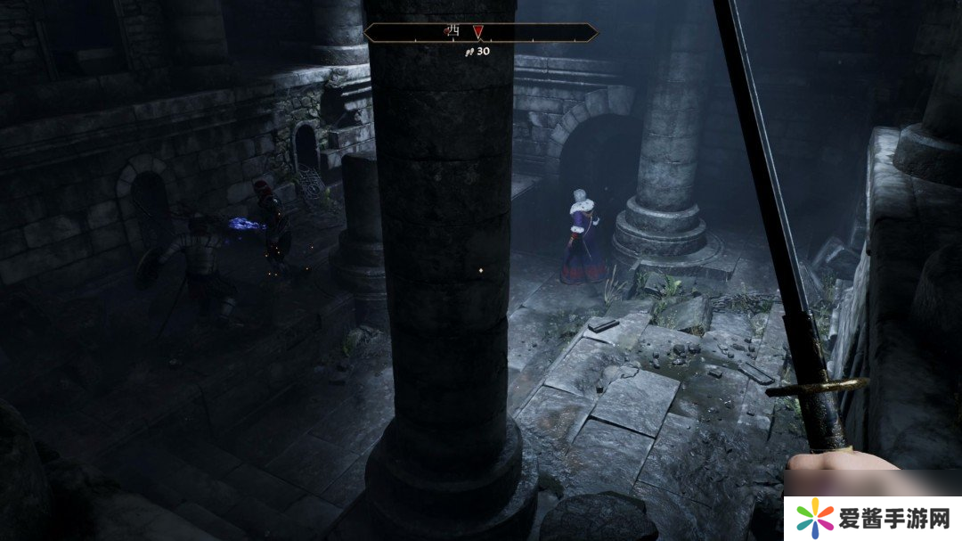 老滚4里很多路都非常绕,而且一些地方也分辨不出哪是哪,这个时候就比较看重头上的任务标记了,找不到位置的时候尽量往头上的红色目标点走。