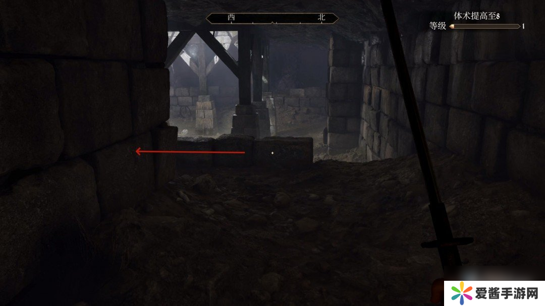 走到这个位置往左边走,左边有一个箱子在暗处,这个箱子需要开锁。