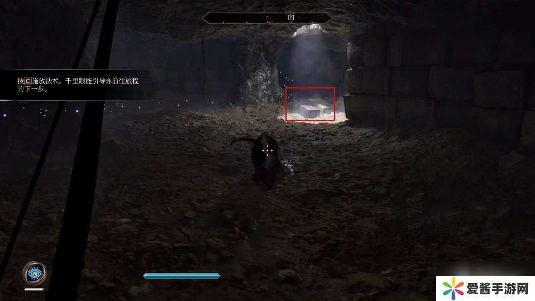 进来后会让我们装备千里眼法术,打开日志后就能看到,右下角的蓝色眼睛就是千里眼了。