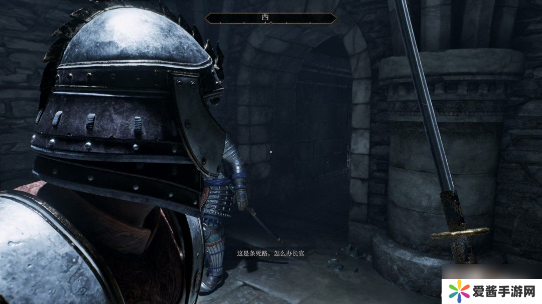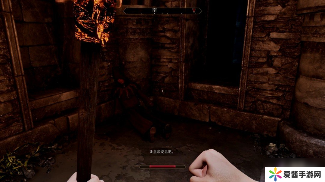 对话结束后我们从左边的小道走,觉得黑的记得装个火把,我们的武器被回收了。