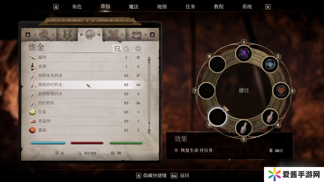 走到一定的位置会跳出教程让我们用R键绑定快捷栏,1-8数字键都可以绑定。地上的蘑菇可以拿一点,如果负重够的话。