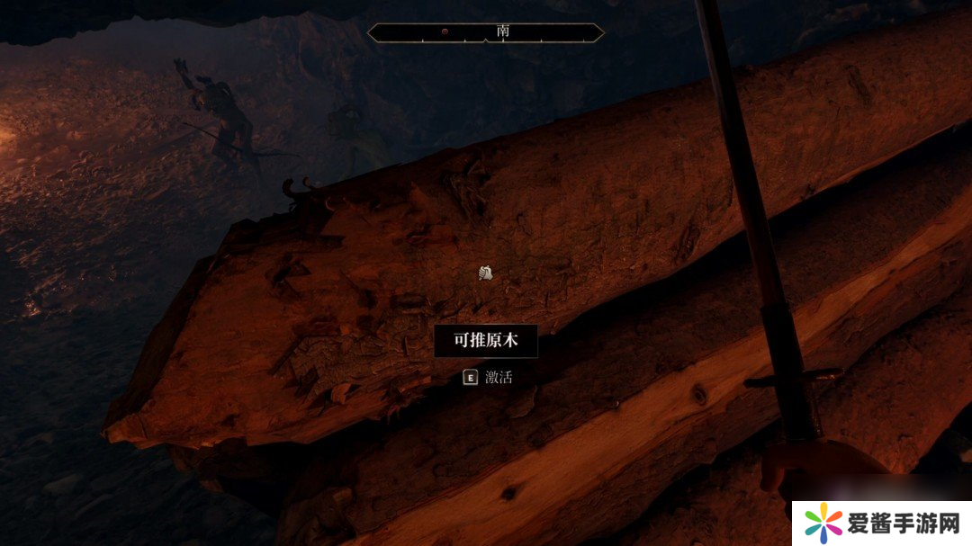 前面会有一堆木头,我们可以和木头互动将木头推下去,下面的哥布林会被直接砸死。