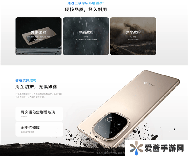在耐用性方面,vivo Y300 GT展现出了军工级的品质。手机采用了升级后的高弹缓震材料,屏幕四周实现了全包围防护,支持满级防尘和全天候抗雨淋。该手机还支持油手、湿手触控,为用户带来了更加便捷的操作体验。