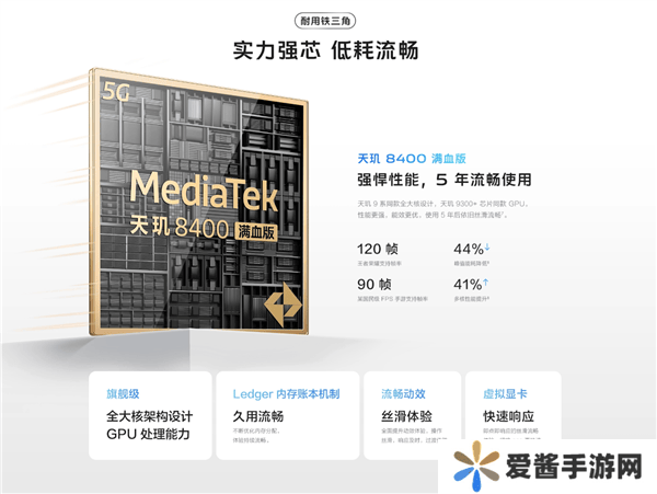 在性能方面,vivo Y300 GT搭载了天玑8400满血版处理器,采用先进的台积电4nm工艺制造,拥有全大核架构和新一代ARM Cortex-A725八核设计,为用户提供了澎湃的动力。