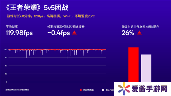 在图形处理方面,骁龙7 Gen4的GPU图形渲染速度提升了30%,在实际游戏中,《王者荣耀》5v5团战测试中,接近满帧120帧的表现,能效比前代提升了26%,比竞品领先34%;在《绝区零》测试中,平均帧率超过52FPS,能效比前代提升了20%,同样领先竞品34%。骁龙7 Gen4还支持Snapdragon Elite Gaming特性,如骁龙自适应游戏画质技术和高通自适应性能引擎4.0,能够智能调度资源,确保游戏流畅运行,同时降低功耗。