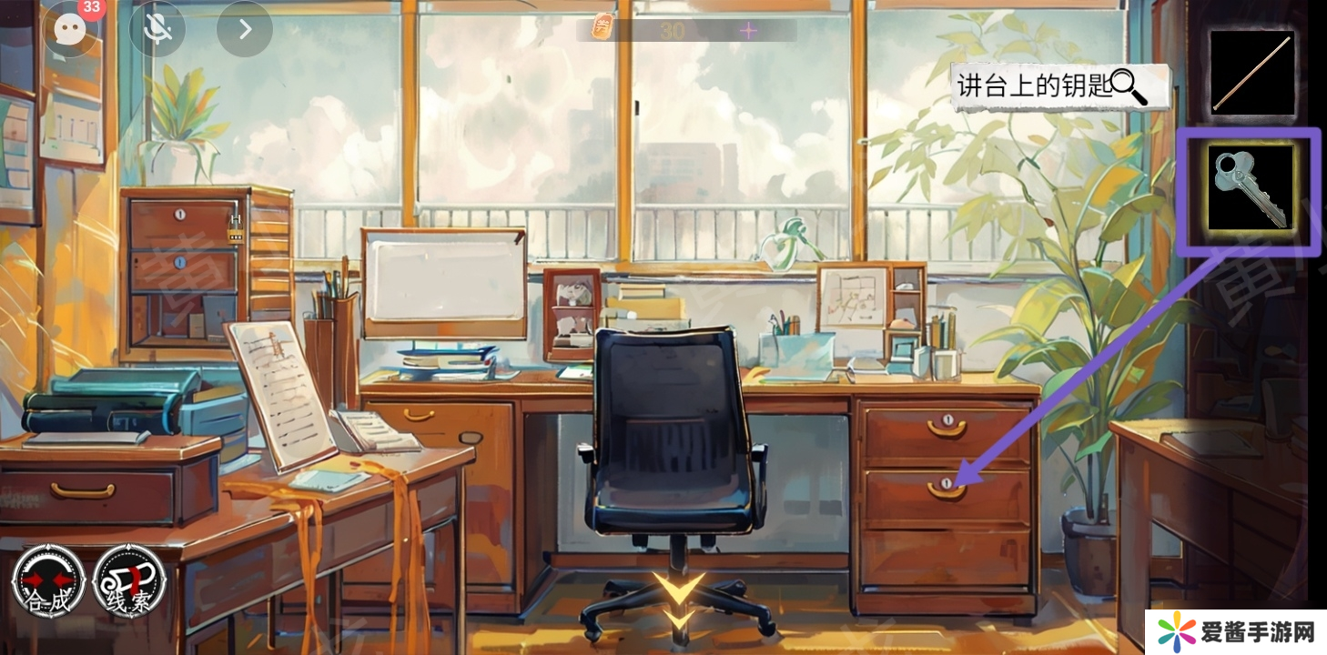 8.用【讲台上的钥匙】打开办公桌第二个抽屉上的锁