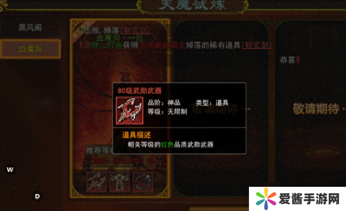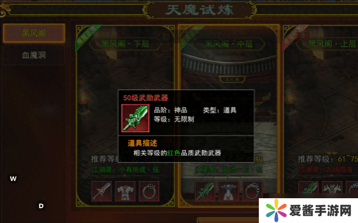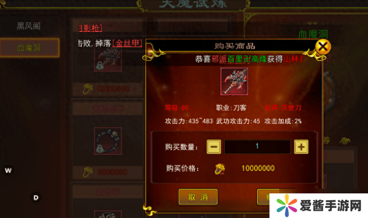 2、也可以在天魔试炼的黑风阁商城中通过声望积分兑换,声望积分可以通过在天魔试炼击杀怪物获得。
