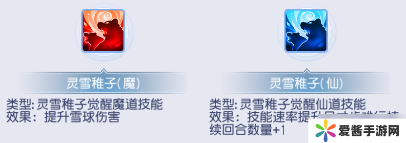 灵雪稚子的觉醒根据需求进行选择即可,追求更高的雪球伤害且愿意为之能否出手进行博弈或对出手较为自信走魔道;追求更高的出手速度和“寸步难行”效果的提升选择仙道。而基于本期培养推荐的方向,小编更推荐魔道。