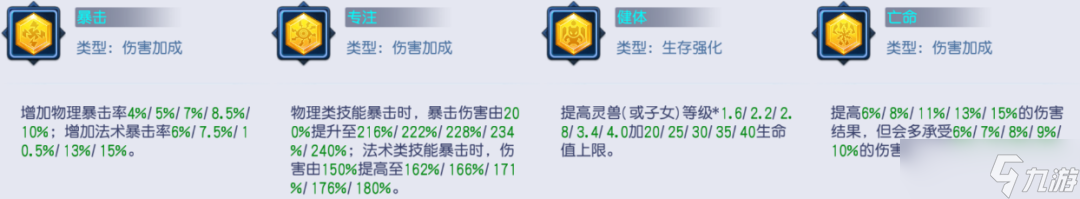 基础技能格*5(特殊*1、法连、法爆、法魂、法穿)+护符技能*1(“生存”类技能)+指定技能格*2(迅捷、逆击/气功/强横)单技能护符中较为暴力的一套打法。基础技能格子皆选择核心技能,“生存”类技能较为灵活,根据需要选择即可,以上两步在法宠中基本相同。迅捷提供更高的出手速度,也是竞技活动中较为实用的。最后还有一个技能推荐从逆击、气功、强横中进行选择,再次提升灵雪稚子的伤害能力。双技能护符玩家推荐再从逆击/气功/强横中择一进行补充,叠加伤害,继续提高灵雪稚子的输出。