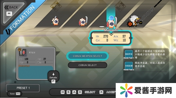 玩家可以对主控角色进行更换,也可以对小兵进行调整。demo版目前仅上线了四个不同技能的主角,每个主角所携带的小兵也不同。例如这个“哈利吉坦”初始血量会比其他角色更多,还额外带有减伤效果。当“哈利吉坦”作为队长上阵时,小兵使用的武器为盾剑和标枪。