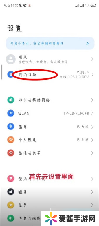 shizuku显示帧率教程1、下载安装之后选择设置,然后打开我的设备。