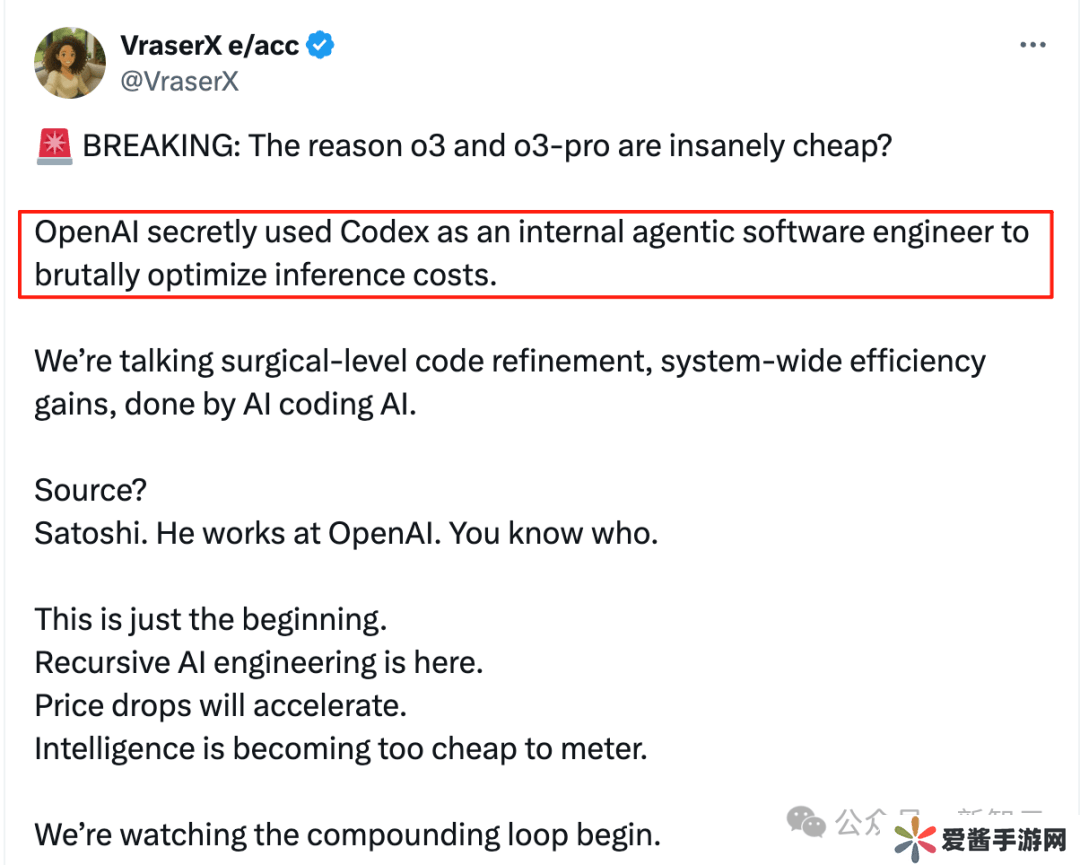 更令人惊讶的是,Codex在内部扮演了另一个重要角色。OpenAI秘密使用Codex作为智能体软件工程师,递归地优化推理成本,从而大幅降低了o3等模型的价格。这一举措不仅彰显了Codex的强大能力,更为AI技术的普及奠定了坚实基础。