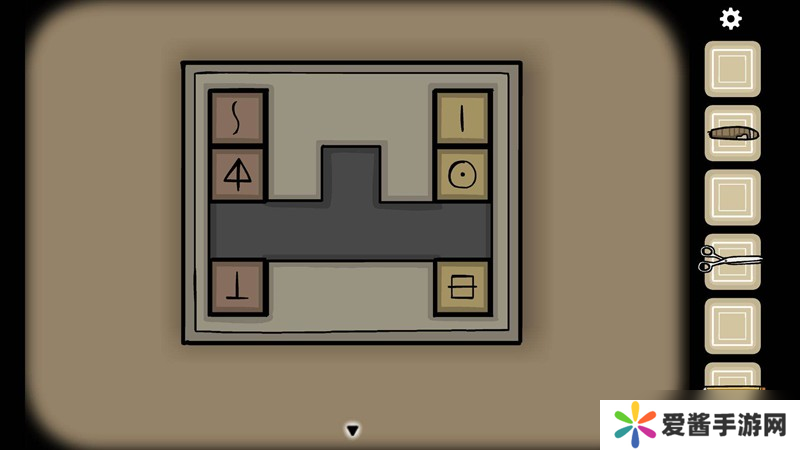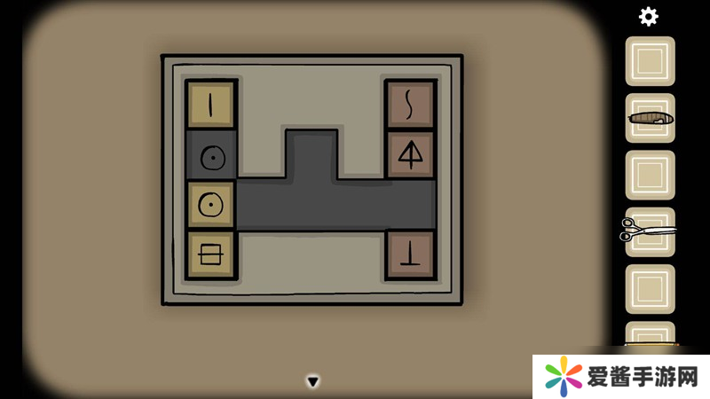 华容道游戏中的第四张碎片需要玩家解开方块谜题。这个谜题的特点是左右两侧各有3个方块,图案相互对应。